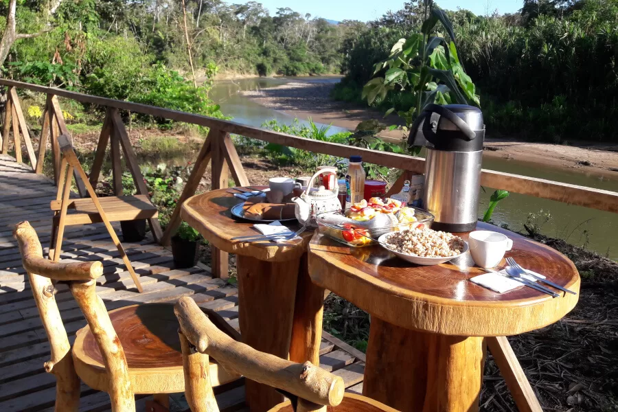The dining room at Casa Machiguenga is much more than just a place to eat; it’s the social heart of the lodge and your strategic starting point for all your jungle adventures.