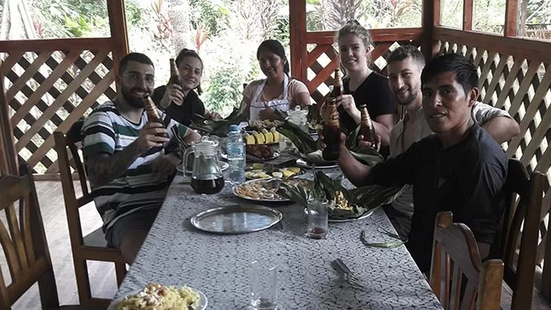 On our River Tubing Adventure, you can relax. We’ll enjoy tubing, one of our fun adventures. It involves floating on the currents of the Palotoa River, driving independently downriver for approximately 1 hour until we reach our Amazon Treehouse. This adventure is a unique experience: listening to the sound of the river flow through the jungle. With luck, we’ll be able to observe monkeys and birds along the river. We remind you to bring insect repellent, sunscreen, and a swimsuit for this adventure. Don’t miss it! For lunch, our cook surprises us with typical jungle food at the Amazon Treehouse.